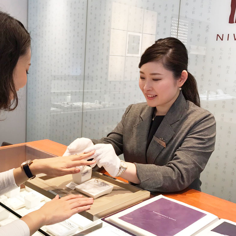 女性男性どちらの指も美しく、リングを付ける幸せを感じていただけるように創られているのがNIWAKAの結婚指輪なのです。 千二百年もの悠久の時を刻む京都で誕生したNIWAKA。時を超えて、息づく日本の美。俄の指輪の誇りと歴史を感じていただければ幸いです。NIWAKA俄(にわか)に精通した専門スタッフがお客さまをご案内させていただきます。