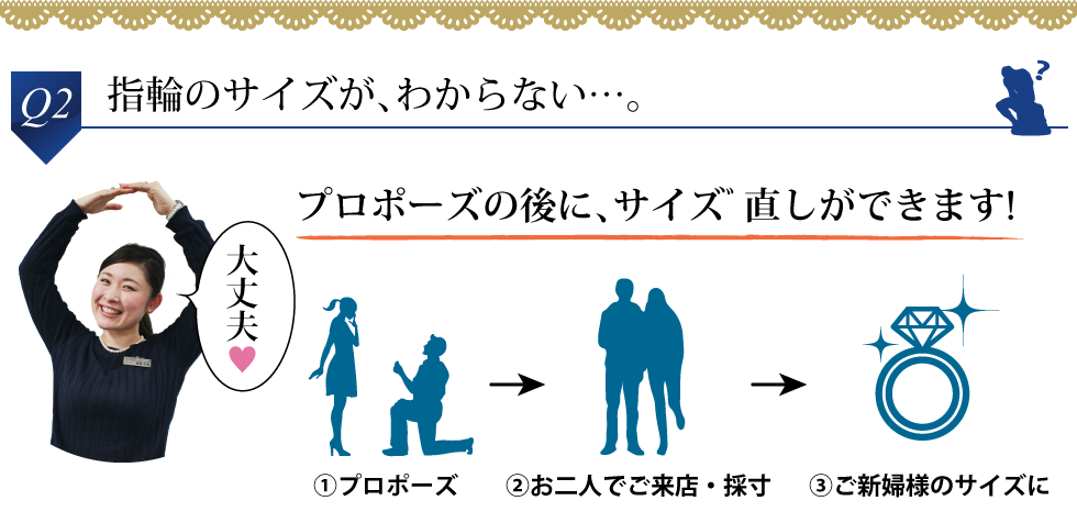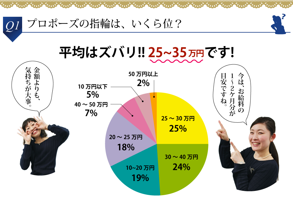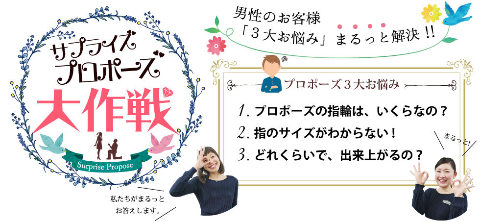 女性憧れのプロポーズと言えば、映画やドラマでも目にする「箱パカッ!」です♪ プロポーズの言葉とともに贈られるエンゲージリングは女性の何よりの憧れなのです。 さらに、彼女を喜ばせたいとの想いから、最近は彼一人でサプライズプロポーズをする方が増えているんですよ。 でも、いざ「エンゲージリング(婚約指輪)を贈ろう!」と、思っても、分からないことが沢山…。 そんな悩めるそこのあなたに…!