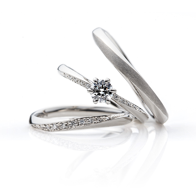 信濃川の水面を走るやわらかな春風をイメージしたデザイン。やわらかな春風がゆっくりと運ばれてくるような優雅なウェーブラインが美しいリングです。