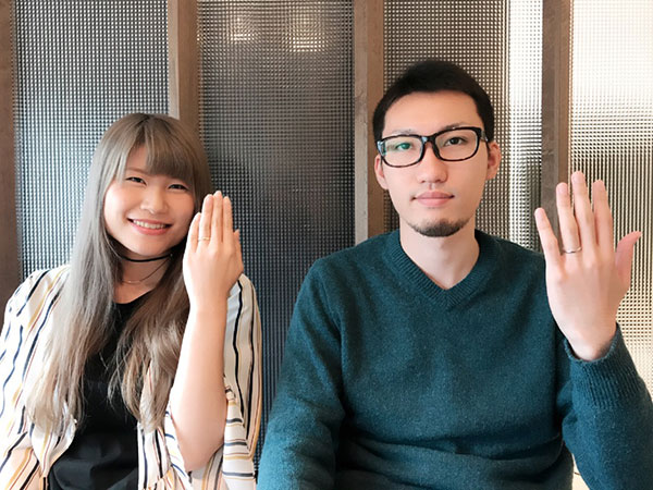リングの形・幅・素材などをお選びいただき、お二人だけの特別なリングに仕上がりました!