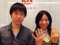 俄のマリッジリングをお選びになったのはひろゆき様&あやこ様。結婚式では赤地に黒の華やかやドレスをお召しになるそう。明るい奥様にピッタリですね。ご友人もBROOCHでマリッジリングをお選びくださったそうです。「スタッフの明るい対応がよかったです!」とコメントいただきました。いつまでもお幸せに!