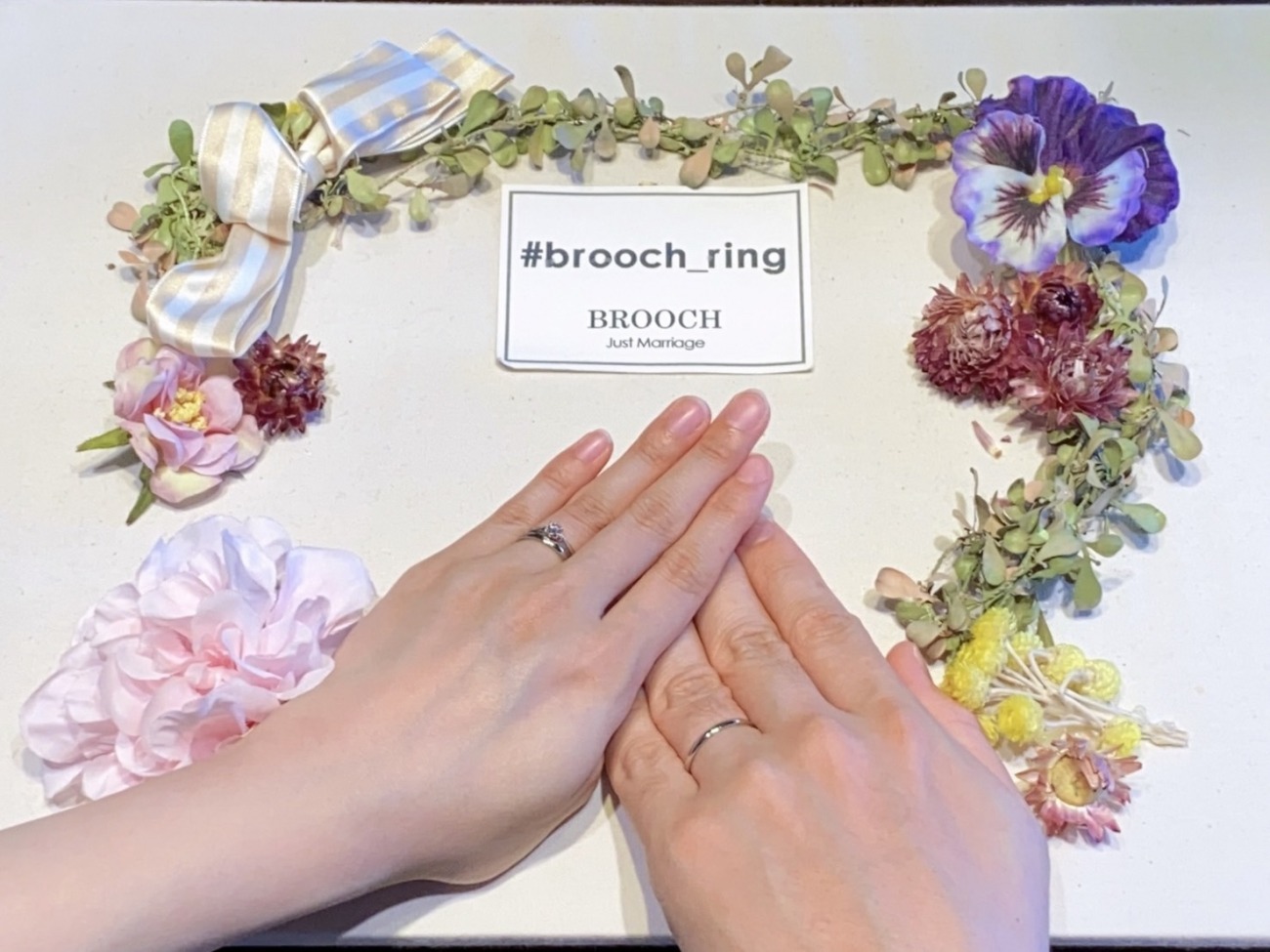 婚約指輪を重ねて着けられるシンプルなデザインの結婚指輪(マリッジリング)を探していたおふたり。様々なジュエリーショップで指輪を見ましたが、BROOCH(ブローチ)でLUCIE(ルシエ)の指輪を見て、一目惚れだったそうです!お受け取り際、婚約指輪(エンゲージリング)を重ねて着けたときの奥様の嬉しそうな表情がとても印象的でした♪