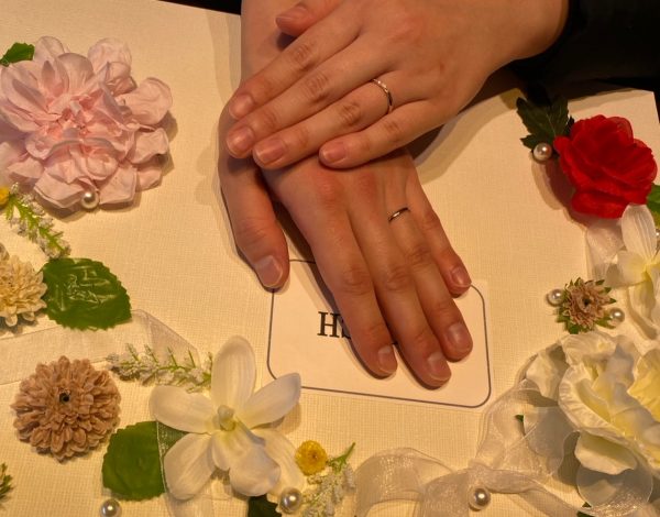 ストレートなデザインが好みだったご主人様とウェーブなデザインが好みだった奥様。「一生身に着けるものだし、好きなデザインで選ぼう」ということで、NIWAKAとLUCIEの姉妹ブランドでのご用意でした。10分くらいで決まりましたと即決だったお二人!ピンクゴールドのご結婚指輪とってもお似合いでした♪