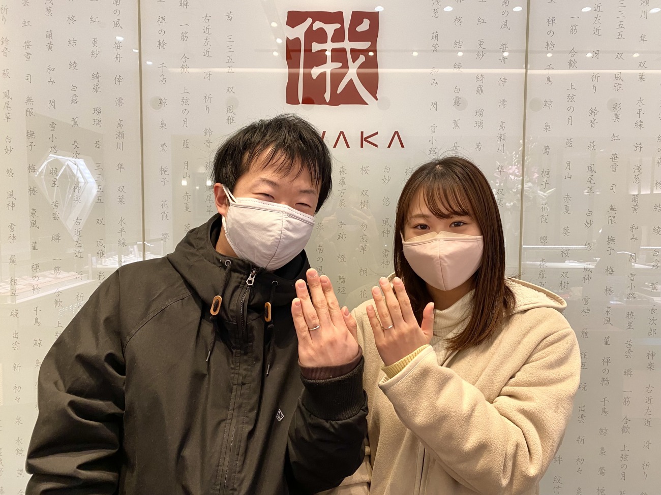 BROOCH(ブローチ)を元々知ってくださってお越しくださったおふたり。奥様の細い指に俄のセットリングがとてもよくお似合いでした!結婚式をされる前にぜひ、BROOCH(ブローチ)へ寄ってください。クリーニングやメンテナンスなどお待ちしております。