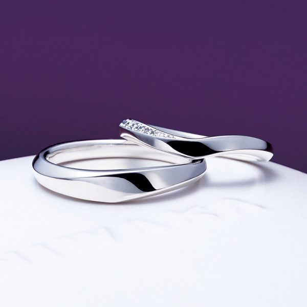 レディースのV字ラインが美しく、メンズリングのV字ラインはレディースよりも切れ込みが深くないのが特徴。