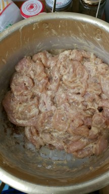 材料は鶏ムネ肉、小麦粉、塩、醤油、みりんです!