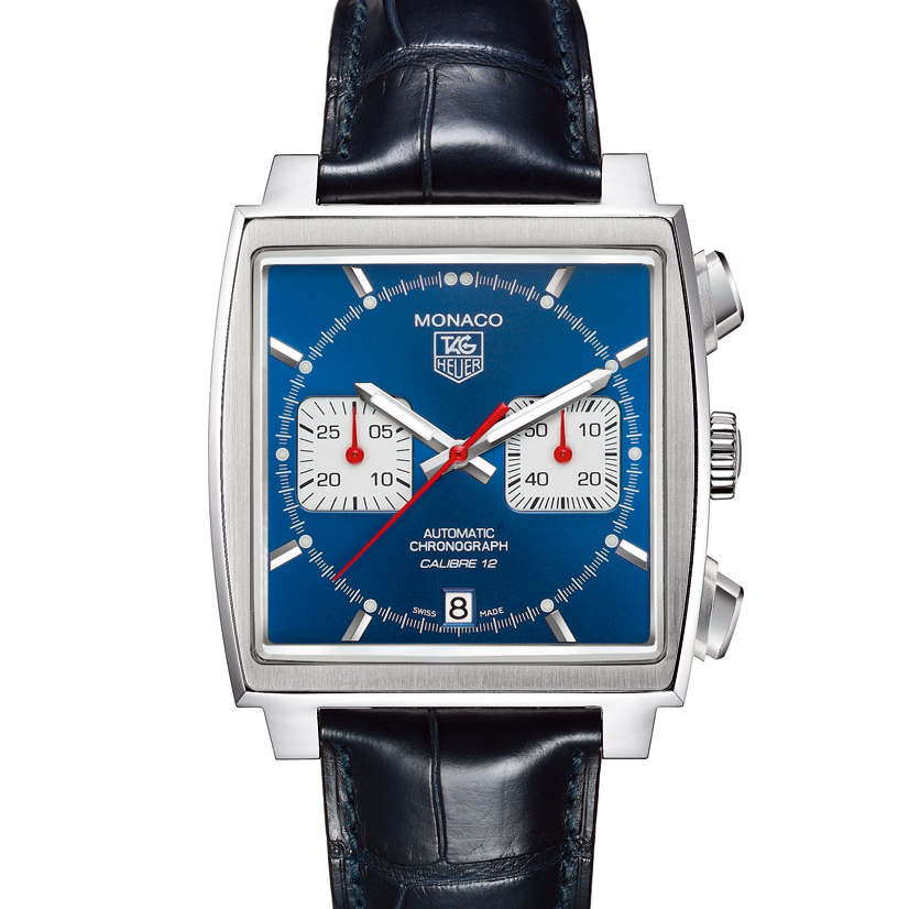 モナコのいくつかのエディションでは、リューズを9時位置に配することで巻き上げる必要がないことを示しています。 レトロシック バージョンではメタリックなブルーのダイヤル、レッドのセコンドハンド、そしてスクエアケースに2つのスクエアフォルムのクロノグラフ サブダイヤルをあしらうという、遊び心あふれるデザインです。