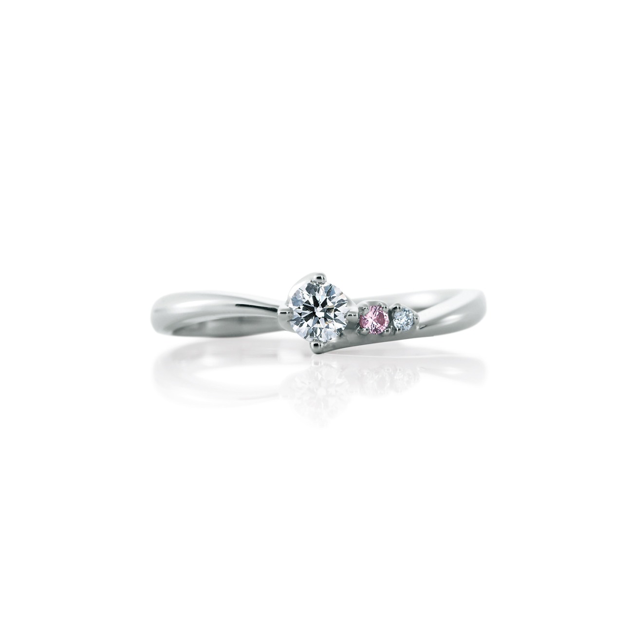 レディースリングには、桜の花びらのような淡いカーブと、可憐に輝くダイヤモンドが繊細に配置され、優しく柔らかい印象を与えます。
