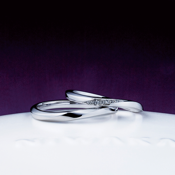 日本一の大河『信濃川』の水面を走るやわらかな春風をイメージしてデザインしました。春の訪れを告げる風は花の香りと共に”ある日の幸せな記憶”も運んで来ます。去年の春は・・・おととしの春は・・・さまざまな思い出を運ぶ風。めぐりくる季節の中で二人で積み上げてきた幾つもの春を運ばれてくる風に重ね合わせて連想させる。そんな思いのこもったリングにしてください。