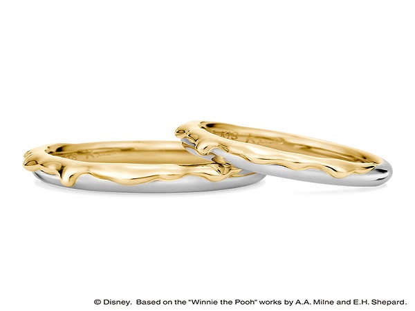 『くまのプーさん』の大好物“はちみつ”がとろけているデザインのマリッジリング。