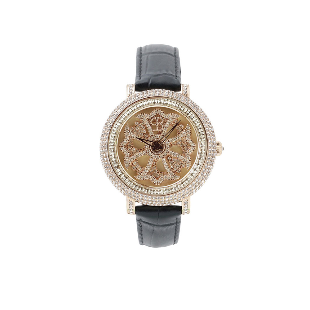 ブリラミコは、スワロフスキーをふんだんに使用した存在感あふれるラグジュアリーなユニセックスデザインが特徴の腕時計です。ブリラミコの最大の特徴は、なんといってもくるくると回転する文字盤!!この回転する文字盤がスワロフスキーをさらに美しく輝かせます♪ゆあぴ様が選んだのは「LILY 40MM BLACK x GOLD <革ベルト>」たくさんのスワロフスキーで埋めつくされ、丸みを帯びた女性の手に馴染む小さなフェイスで、手を動かす度に輝きの美しさを実感出来るデザインです。時計のフェイス部分だけではなく、ベゼルや尾錠部分にもふんだんにスワロフスキーがちりばめられている高級感あふれる腕時計です!その存在感で、芸能人にも愛用者が多いんですよ。GENKINGさんや土屋アンナさんが着けているので有名です!
