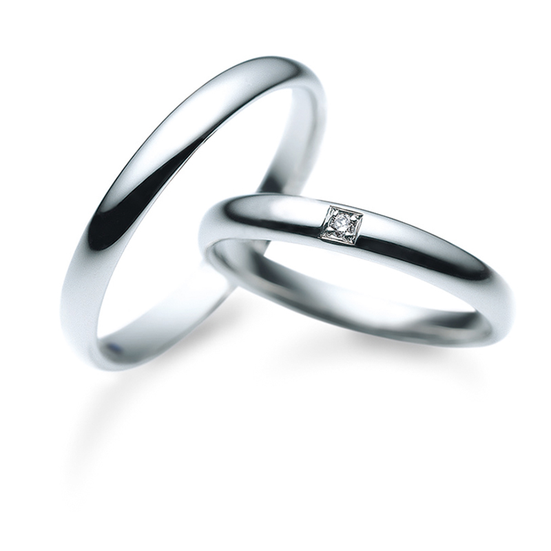 レディースはダイヤが半周入っていてキラキラで、着けていてハッピーになる指輪。