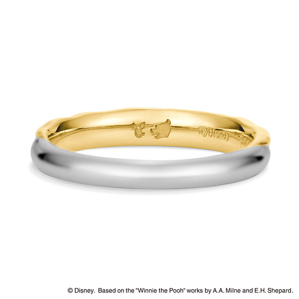 『くまのプーさん』の大好物“はちみつ”がとろけているデザインの結婚指輪(マリッジリング)になっております。イエローゴールドではちみつがとろけけている様子を表現しています。ゴールドの輝きが本物のはちみつのようでかわいらしいですよね!!!