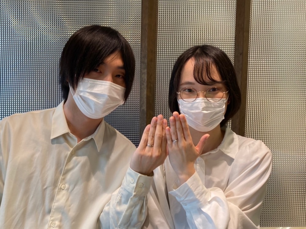 おふたりは高校がご一緒で約7年のお付き合いになるそうです。 長くお付き合いされているかこその仲の良さがお話していて伝わってまいりました。 SNSでリングをお探しの際、BROOCHを見つけてくださりご来店いただきました。ありがとうございます!私たちもおふたりの幸せのお手伝いができ、とても嬉しく思います。