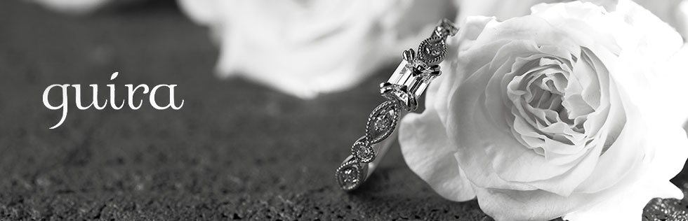無数の灯篭の光をイメージしたエンゲージリングと、小舟に乗って灯篭をあげる二人をイメージしたマリッジリングを重ね付けすると、ロマンチックな名シーンが完成します。