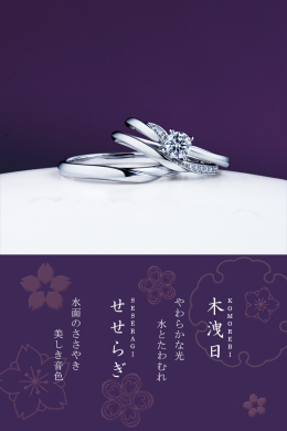 木洩日は、ふたりに降りそそぐやわらかな陽射しがせせらぎに輝く情景をデザインした婚約指輪です。