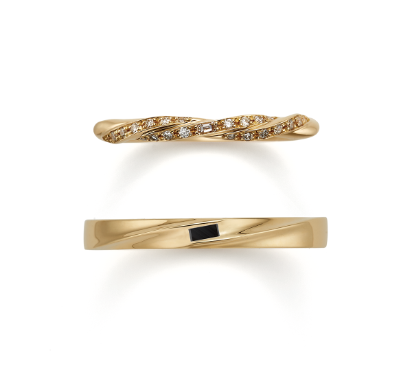 リングの緩やかなカーブは未来へと続く川の流れを、ダイアモンドは水面の輝きを表現。清らかな水の音のように、穏やかな人生を歩むふたりをイメージした結婚指輪です。