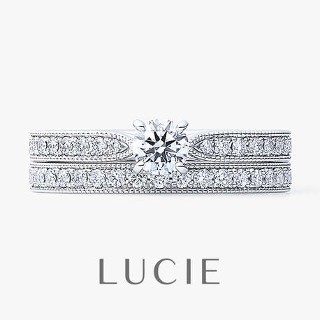 LUCIE(ルシエ)のParfum(パルファン)は、ダイヤモンドが華やかに並んだデザインで、サイドにはミルグレインが施されています。