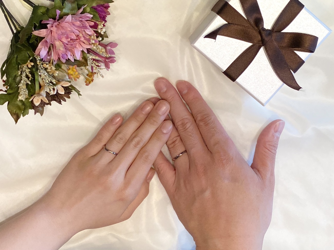 シンプルなデザインを気に入っておふたりの一生モノの結婚指輪をブローチでお選びいただき大変うれしく思います。