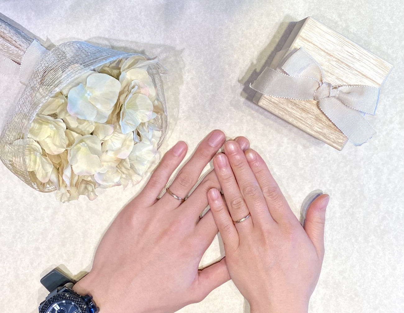 プロポーズは、おふたりで過ごす日常の中でプロポーズされたそうです。何もなかった日が特別な記念日になった瞬間ですよね!365日の中で大切な日が増えたことがとても素敵です!そんなお二人がお選びになったご結婚指輪をご紹介致します。
