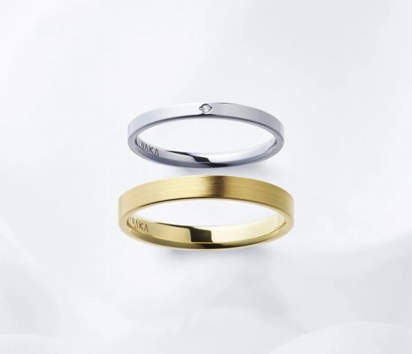 シンプルなストレートタイプの結婚指輪は重ね着けもしやすく他のリングとも相性が良いのでさまざまな重ね着けも楽しんでいただけたらと思います。