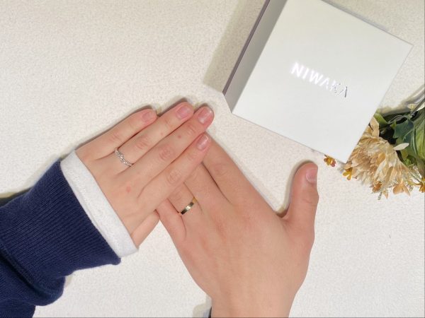 結婚指輪の受け取り時に婚約指輪をプレゼント!おしゃれな俄のセットリング