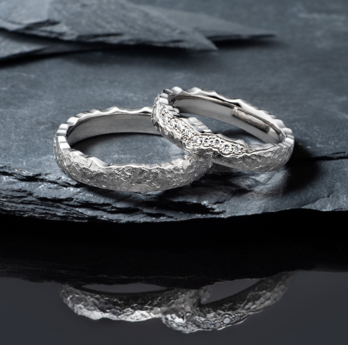 無駄な装飾を加えず、素材そのものの美しさとフォルムの完成度で魅せるリングは、「かっこいい結婚指輪」をお探しの方に特におすすめです。