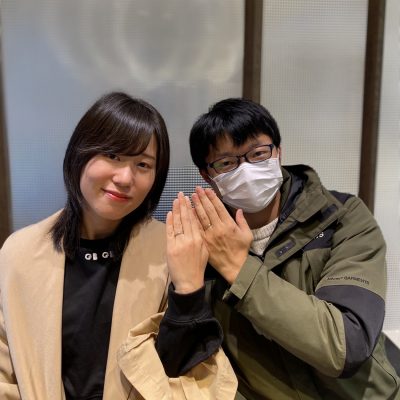 ご婚約指輪・ご結婚指輪共にブローチでお選びいただいており、10年越しにおふたりの大切な記念日にお越しいただけたこと、大変嬉しく思います!!