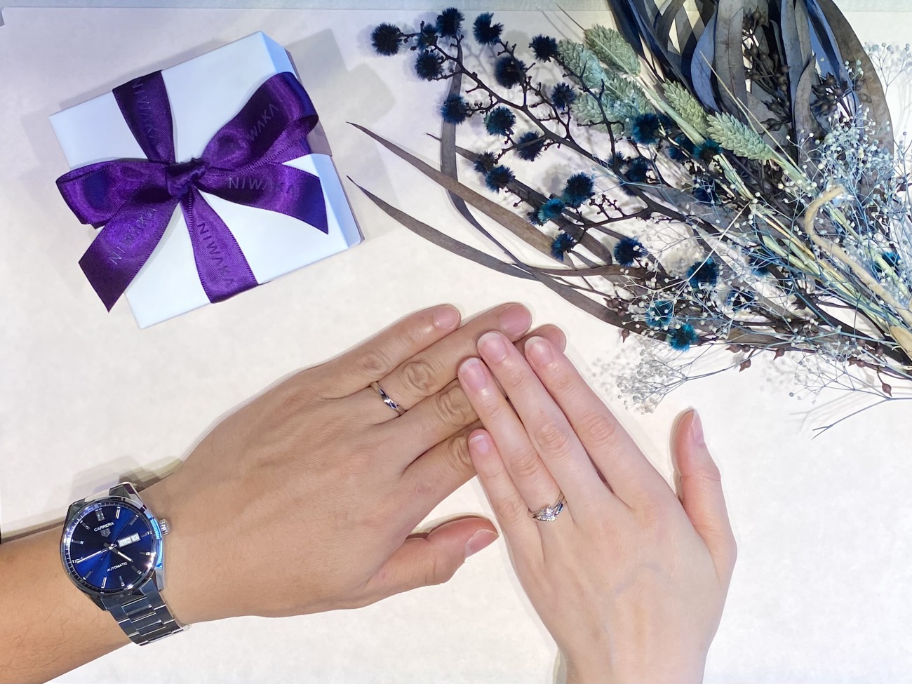 おふたりの人生の中で特別な想いが残っていくお品物をBROOCH(ブローチ)でお選びいただくことができてとてもうれしく思います。また、結婚式も控えたいらっしゃるとのことでしたので、ぜひ、結婚式前にクリーニングやメンテナンスでお越しくださいませ。