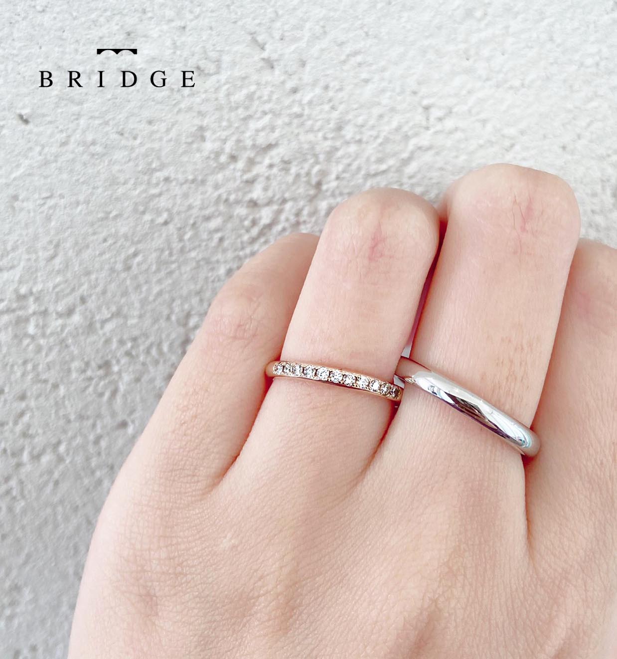 橋には大地の端と端を結ぶ”はしわたし”という意味が込められています。BRIDGEのブライダルリングはお互いの歴史を重ねる2人の”はしわたし”をコンセプトにしています。2人が出会い、揺るぎない絆で結ばれる「誓いの架け橋になりたい」という想いからデザインされた素敵なブランドです♪