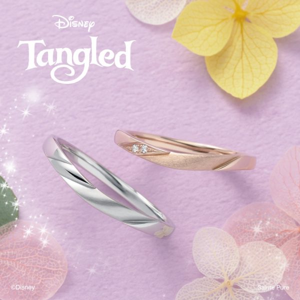 リングには、ランタンの光やラプンツェルの髪の流れを思わせる曲線、自由と夢を象徴するモチーフが込められており、身に着けるたびに物語の美しさを思い出させてくれます。シンプルなデザインにマット仕上げが施されており、柔らかくスッキリとしたフォルムが特徴です。ディズニーが好きな方はもちろん、「自分たちらしいリングを選びたい」というカップルにもぴったりです。
