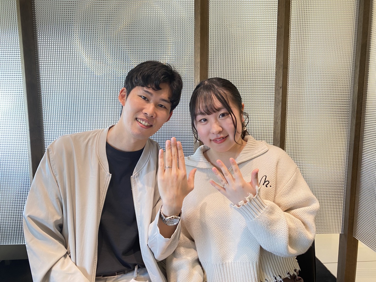 さんま様&きこ様、この度はご入籍、誠におめでとうございます。おふたりらしい優しさと穏やかさが詰まったリング選びを、私たちスタッフも一緒にお手伝いできたことを心から嬉しく思います。それぞれ異なる素材を選ばれたように、これからもおふたりの個性を大切にしながら、一緒に輝く未来を歩んでいってください。そして、ネックレスとしても身に着けられるそのリングが、いつでもおふたりの絆を思い出させてくれる存在になりますように。末永く、お幸せに。