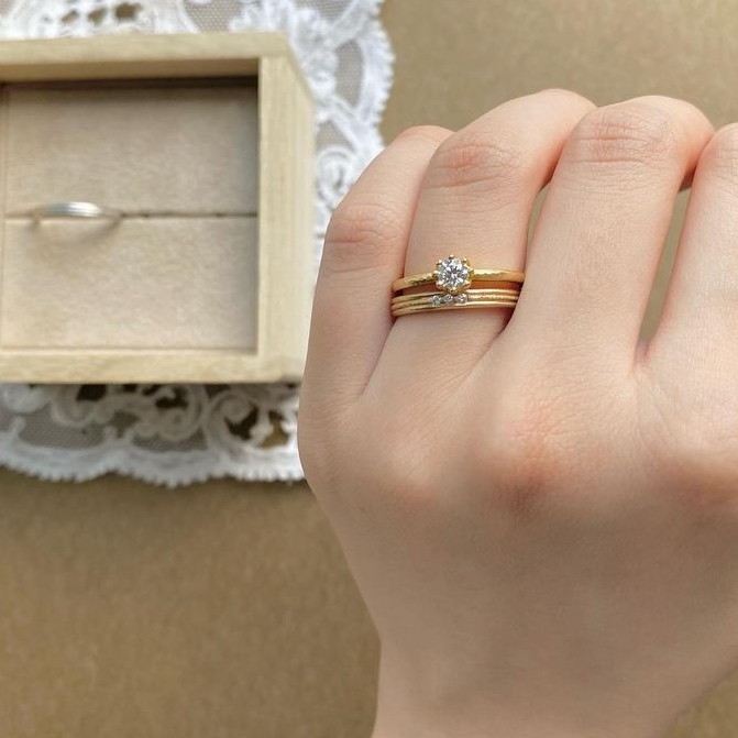 ご主人様も、快く選んでくださり、結婚指輪との重ね着けもかわいく楽しむことができました!