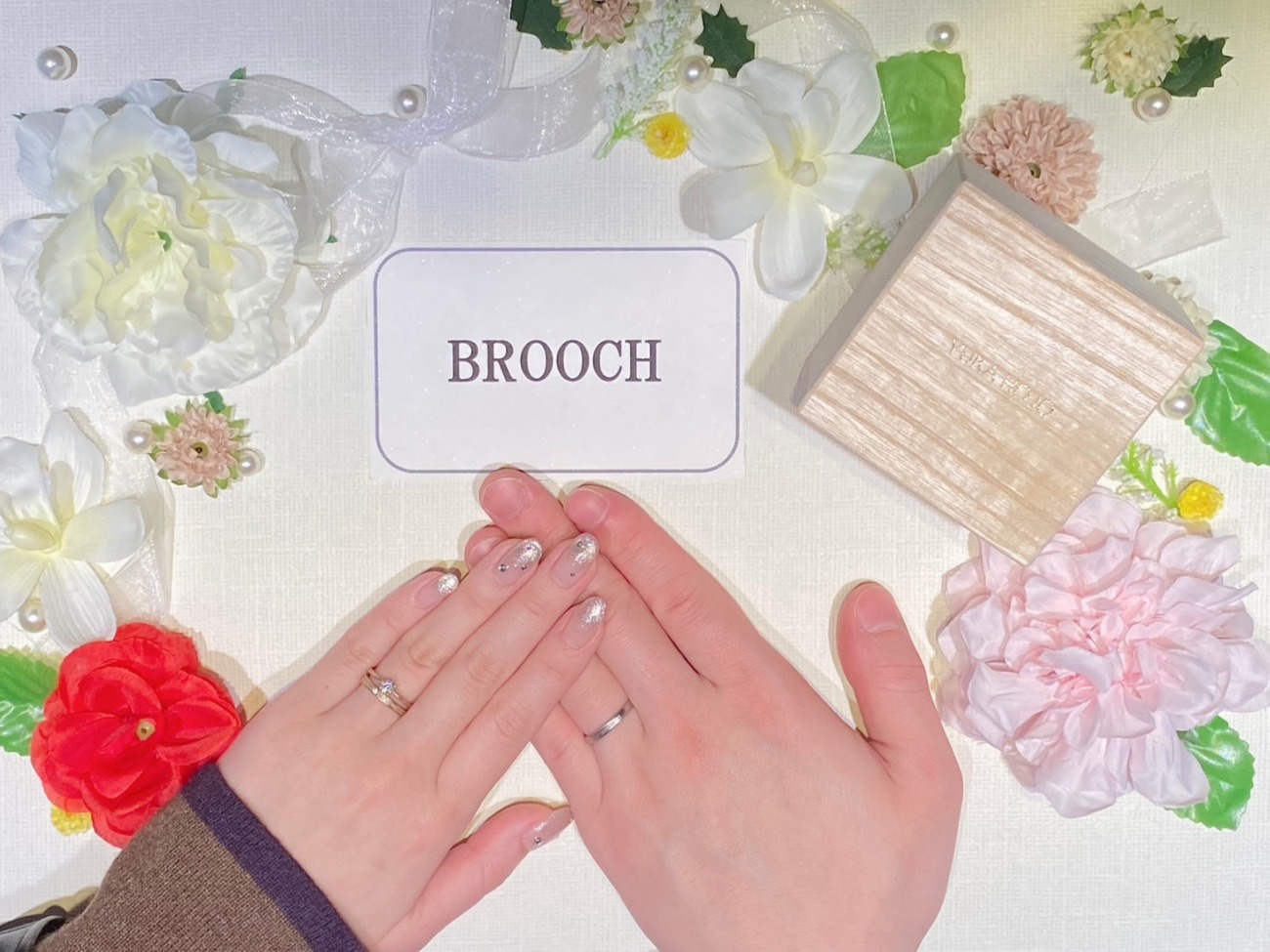 もともとアンティークなデザインを探していたおふたりは、ブローチの店頭でYUKA HOJO(ユカホウジョウ)と出会い選んでくださいました!