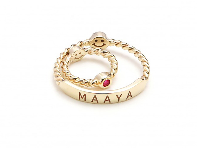 ママと赤ちゃんを一心同体に繋いでくれる“へその緒”をモチーフにしたベビーリングとお揃いのへその緒マムリング。プレート部分には赤ちゃんのお名前や親子・家族のイニシャル等を刻印できます!誕生石の裏側でシークレットアイコンのスマイルがにっこり微笑み、ママと赤ちゃんの笑顔の日々を願います。
