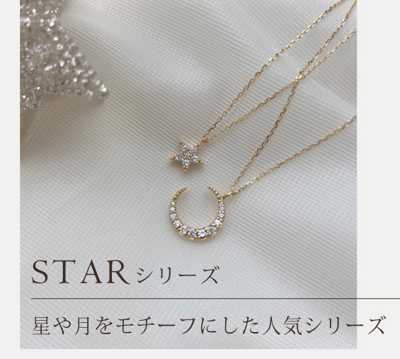モチーフネックレスの中でも人気のスターデザイン。1つ持っているといろんなシーンで活躍します。