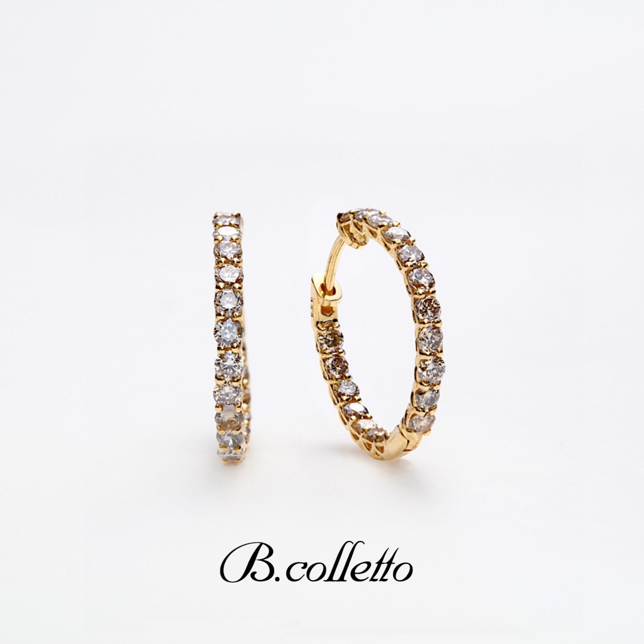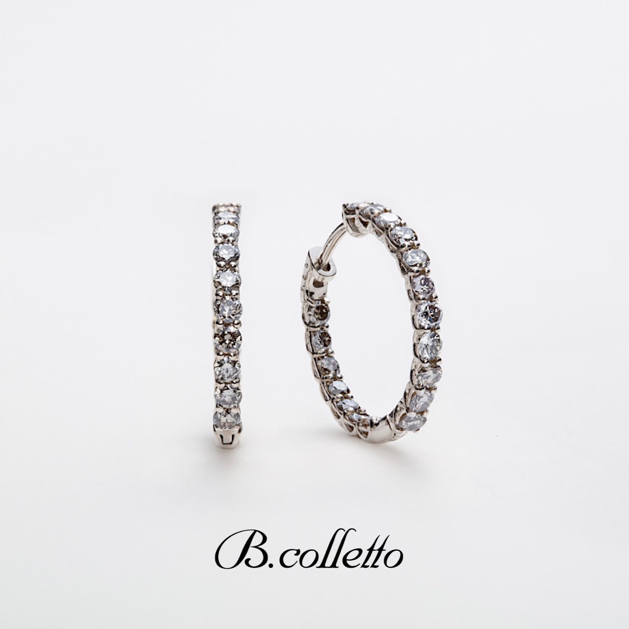 永遠を意味するダイヤモンドが全周にセッティングされた限定デザインです!フープピアスはサイズ感によって印象が変わりますが、このフープピアスは上品に見えるサイズ感で、普段のお洋服だけでなくお呼...