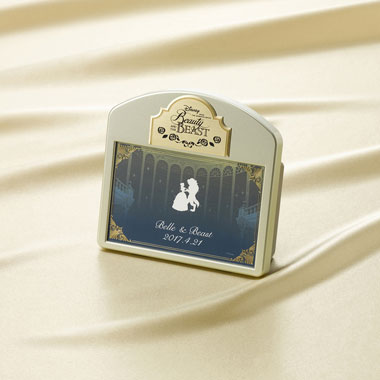 ディズニーアニメーション映画「美女と野獣」のテーマ曲「Beauty and the Beast」とともに、お二人のお名前や記念日が印字できるブック型オルゴールボックスです。