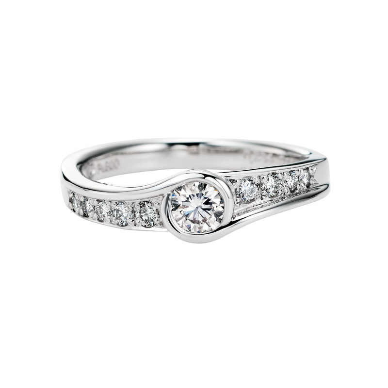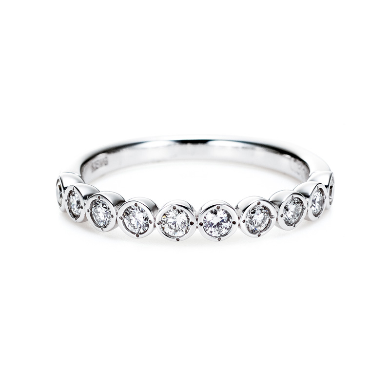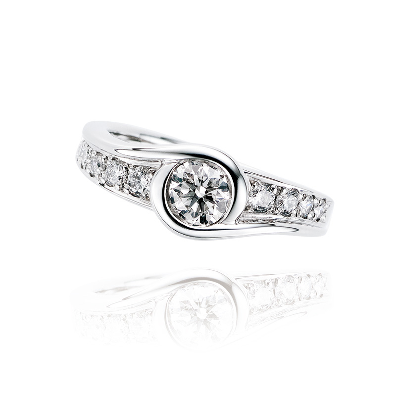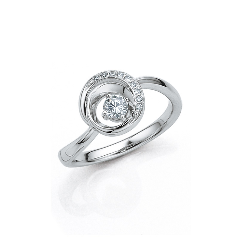 繋がりを象徴する輪(和)をテーマにした「Circle」シリーズです。大きめのセンターストーンを用いたデザインは、アニバーサリージュエリーに相応しい品格です。