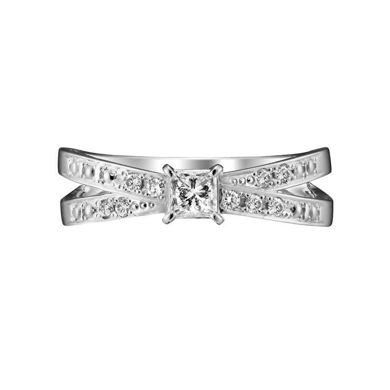 ベーシックなフィルムながら、センターに配置したファンシーカットのすっきりした輝きが個性的なデザインです。