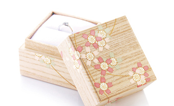 - 桐箱のエンゲージケース「SAKURA 」京都の織物図案家が、一点一点絵つけを施した特別な一点もの。年月が経つ程に桐と絵柄が馴染んでゆく様をふたりで楽しむことができます。