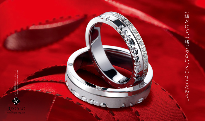 「レガロ」はリングの素材、形状、幅、表面仕上げ、ダイヤモンドセッティング、文字彫刻、インサイドセッティング、お二人のイメージに合ったデザインを自由に製作できます。