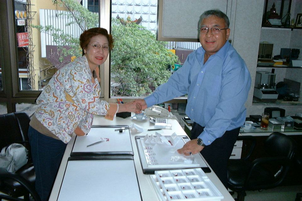 タイ王国バンコクにてミャンマー産NNルビー(非加熱ルビー)の買い付けバンコクのジュエリー協会会長のミスターシャバリットと弊社会長