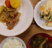 パイカ・じゃがいも・にんじん・糸こん・セロリの煮物