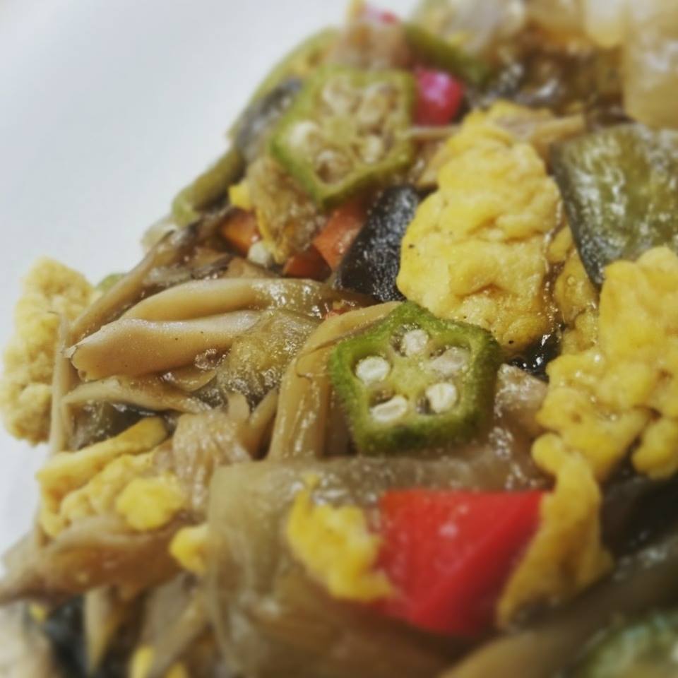 ④ここで①で炒って別にしておいた”たまご”を投入、水溶き片栗粉でトロミをつけたら最期にオクラを入れて火が通ったら出来上がり~~!