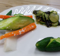 下のお皿の3品にはすべてきゅうりが使われていますが