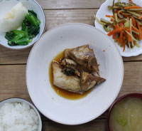 ②①に酒、しょうゆ、みりんをひたひたに入れて煮付ける。