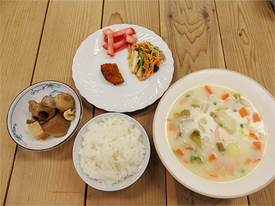 にんじん・グリーンピース・ジャガイモ・玉ねぎ・セロリがたっぷり!