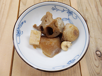 里芋と大根とレンコンの煮物は味がしっかりしみ込んでいます♪