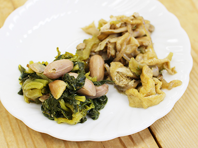 生落花生の和え物、あぶらあげといとこんにゃくの煮物